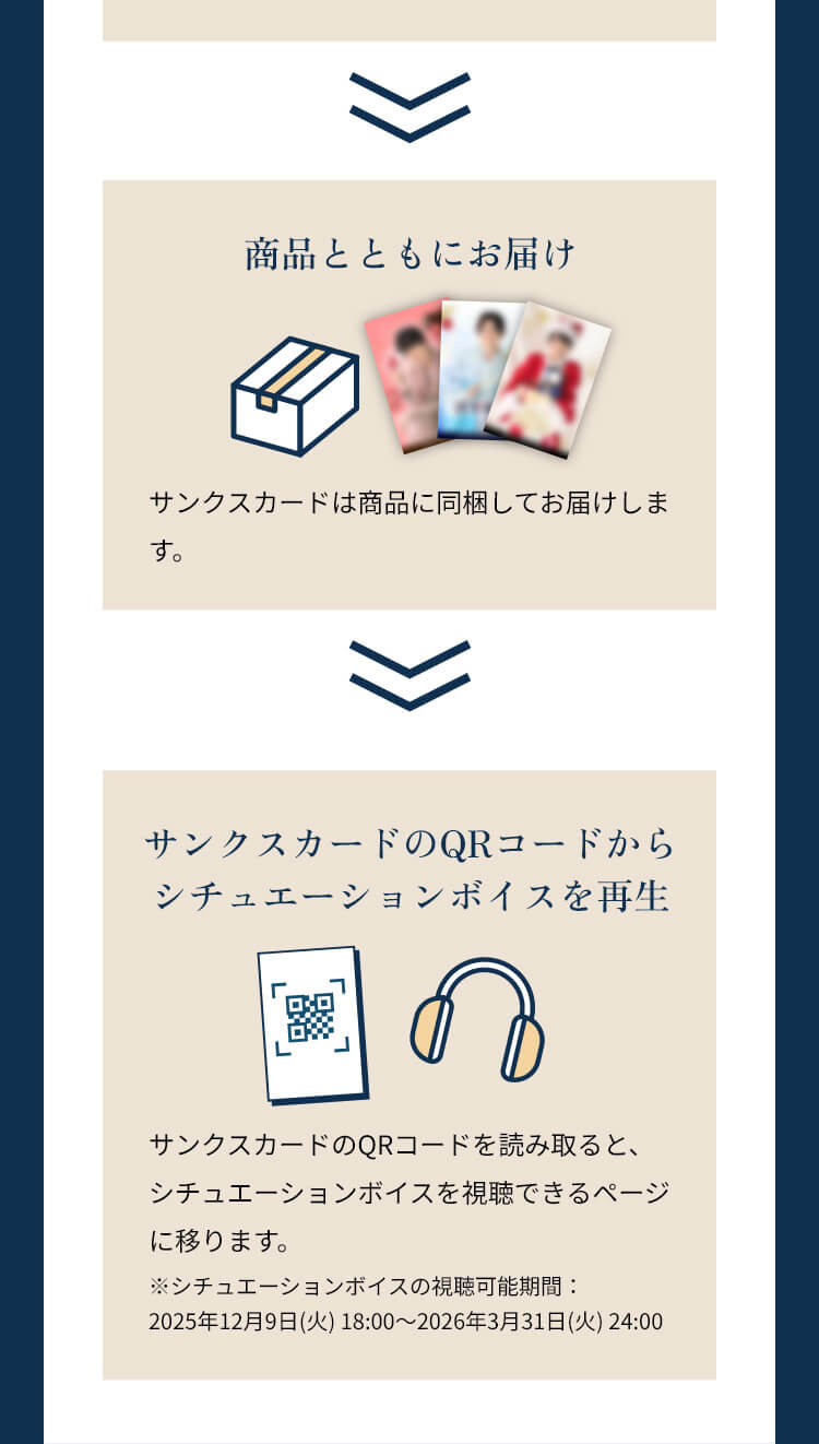 ※ビジュアルサンクスカードに印刷されたQRコードを読み込むと、シチュエーションボイスが再生できるページが表示されます。