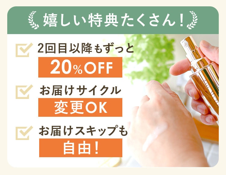 「でも、肌に合うか心配…」 そんな方にもうれしい”継続縛りなし” の定期コースなので ご安心ください!