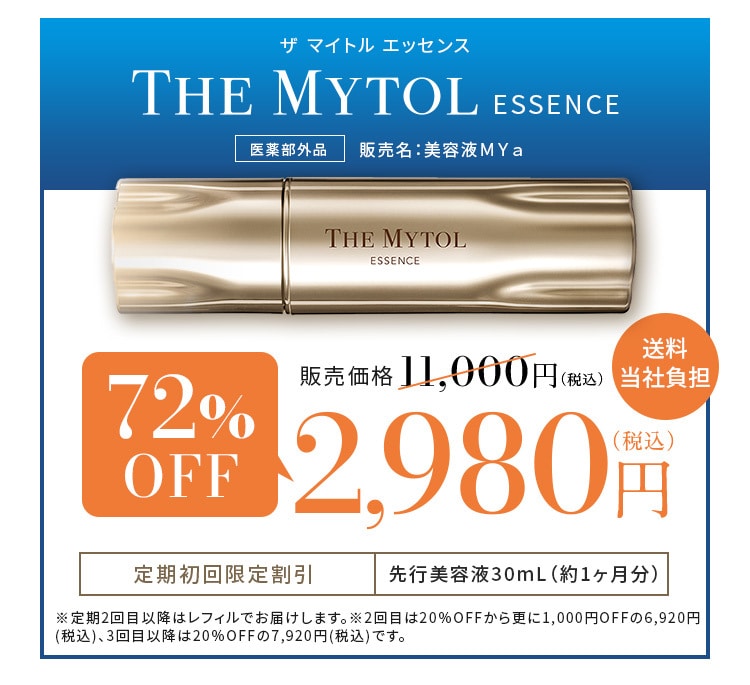 大正製薬のTHE MYTOL ESSENCEを 定期初回特別 【72%OFF】2,980円(税込)でご購入いただけます!