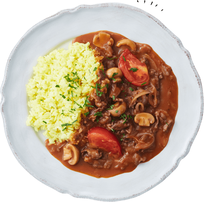 見た目を裏切らないおいしさに、思わずほっこり。ライスと一緒に食べると酸味がちょうどよくて、どんどん食べ進めちゃいます。トマトジュースを使うというのも手間がかからず嬉しいポイントです!